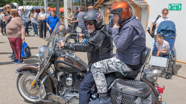 120 Harley-Freaks der SSBL und des HPZ Schüpfheim durften auf dem Sozius oder im Seitenwagen schwerer Harley-Maschinen für eine Spritztour Platz nehmen.