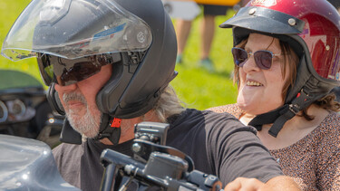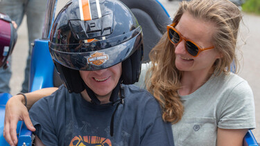 Die grosszügige Spende des Harley Clubs beinhaltet auch jeweils ein feines Mittagessen mit währschaften Menus wie Älplermagronen oder Schnipo. Für die anschliessenden Rundfahrten mit den Harleys braucht es tatsächlich etwas Boden. Nach dem Essen formierten sich die SSBL Klienten zu einer Polonaise und heizten der Beiz tüchtig ein. Die Insieme-Musig Bänd sorgte für den richtigen Sound zum Schunkeln, Tanzen und Mitsingen. Als es dann mit den Spritztouren losging, nahmen einige auf dem Sozius Platz, andere durften im Seitenwagen mitfahren. Fahrtwind, Geschwindigkeitsrausch und einen «Mordslärm», das gab es aber für alle on top. Die Fahrgäste zeigten unverhohlen ihre riesige Freude und Begeisterung.