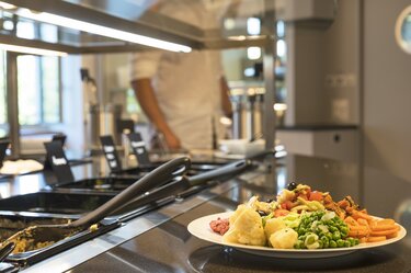 Im Herzen des historischen Klosters Rathausen erwartet Sie das Restaurant pro nobis. Wählen Sie täglich zwischen zwei wechselnden Tagesmenüs oder stellen Sie sich Ihr Lieblingsgericht am warmen Free Choice Buffet oder dem reichhaltigen Salat Buffet zusammen – ideal für die Mittagspause unter der Woche sowohl für interne als auch für externe Gäste.